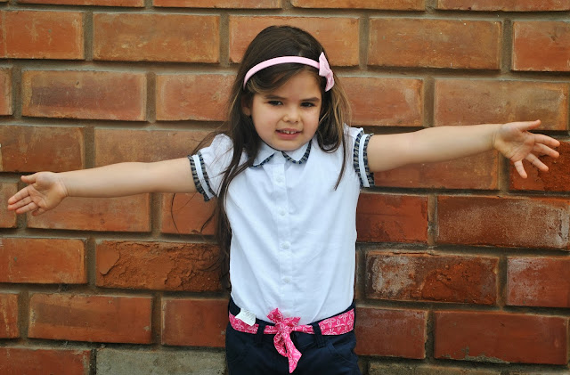 Holassss, les cuento que estoy feliz porque mi mini Titi ya comenzó a estrenar nuevos outfits, no del todo veraniegos, pero definitivamente más fresquitos. En esta oportunidad su look está compuestos por una blusa blanca muy femenina con ribetes azules, y un pantalón azul a la altura de la pantorrilla ideal para esta temporada que todavía no termina de definirse. Espero que les guste el post y muchas gracias por leer el blog.